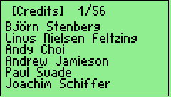 Movie-style credits display, using original and custom font (uwe_prop again).
